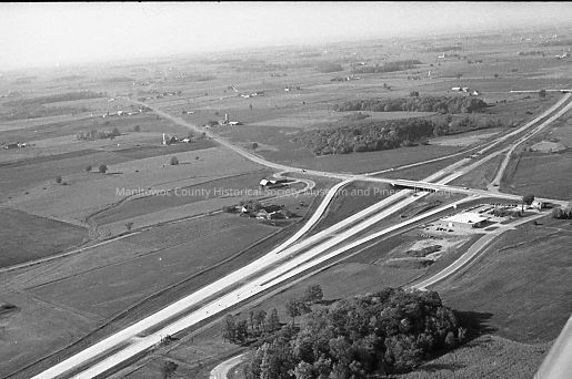 Aerial view of Francis Creek looking east. St. Ann Catholic Church in center of first frame.