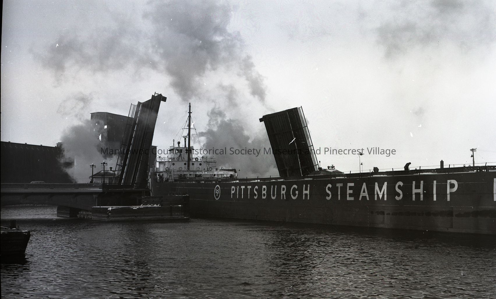 Francis House going up river through the 10th Street bridge. Photograph taken November 29th, 1955.