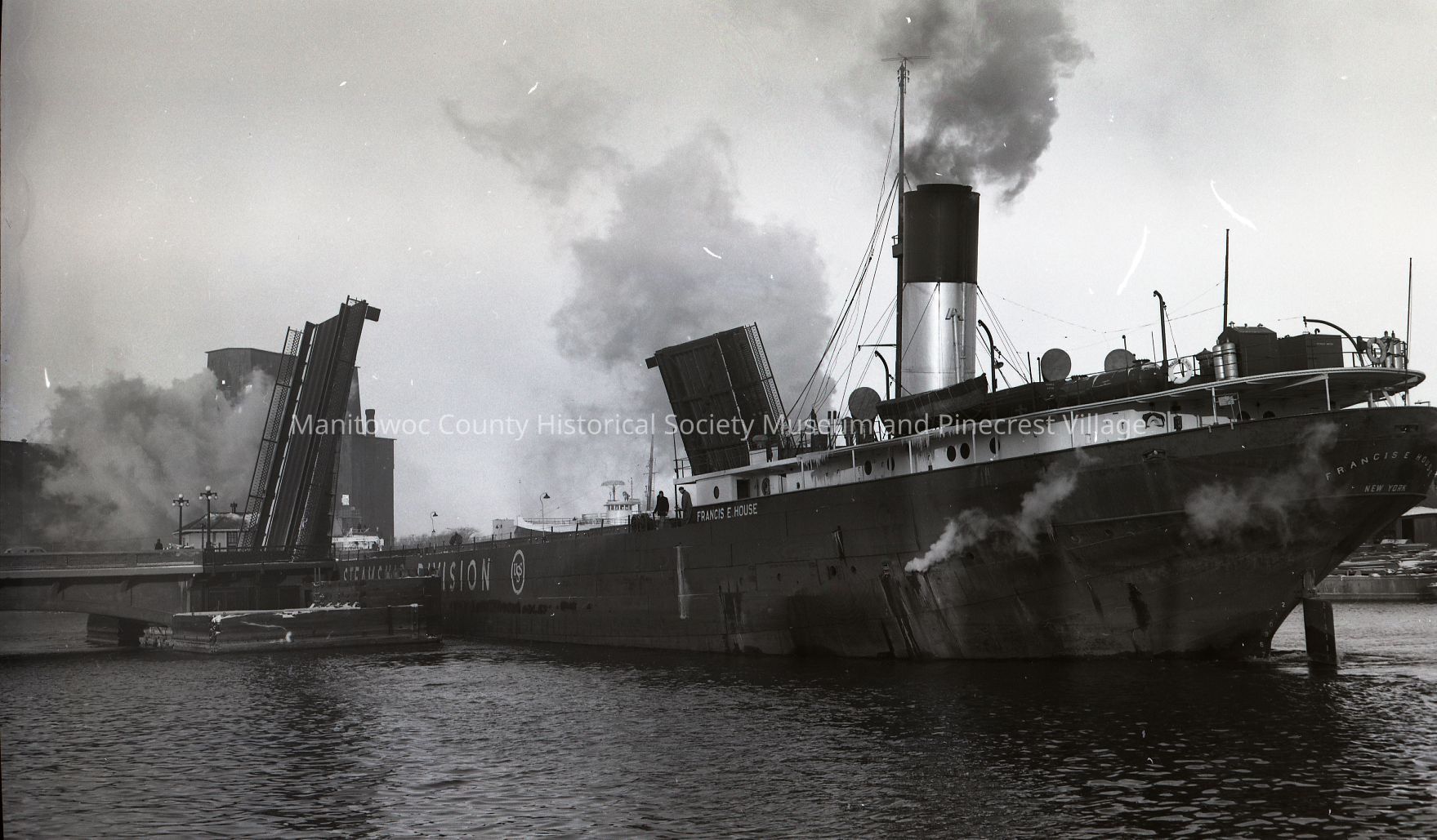 Francis House stern going through the 10th Street bridge. Photograph taken on November 29th, 1955.