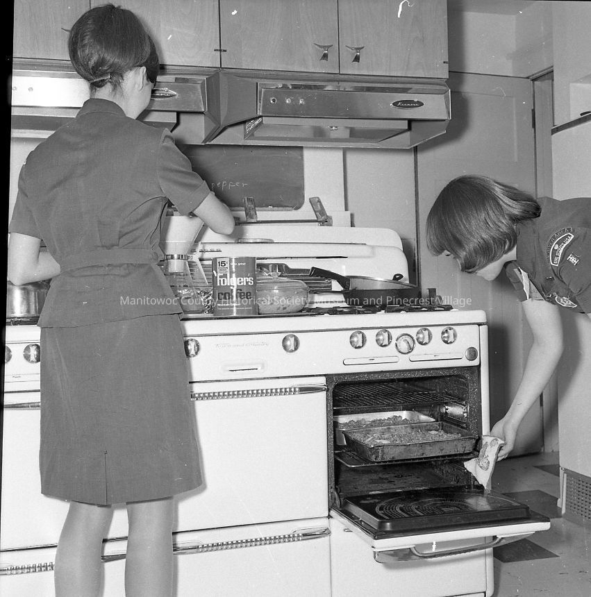 Girl Scout Camp Manitou - girl scouts cooking meal for house party at the Platt home, 601 north 6th street.