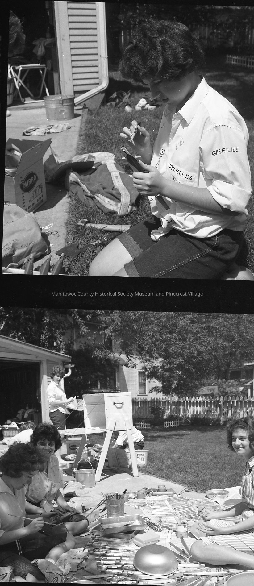 Girl Scout Camp Manitou - girl scouts painting equipment getting ready for Roundup.