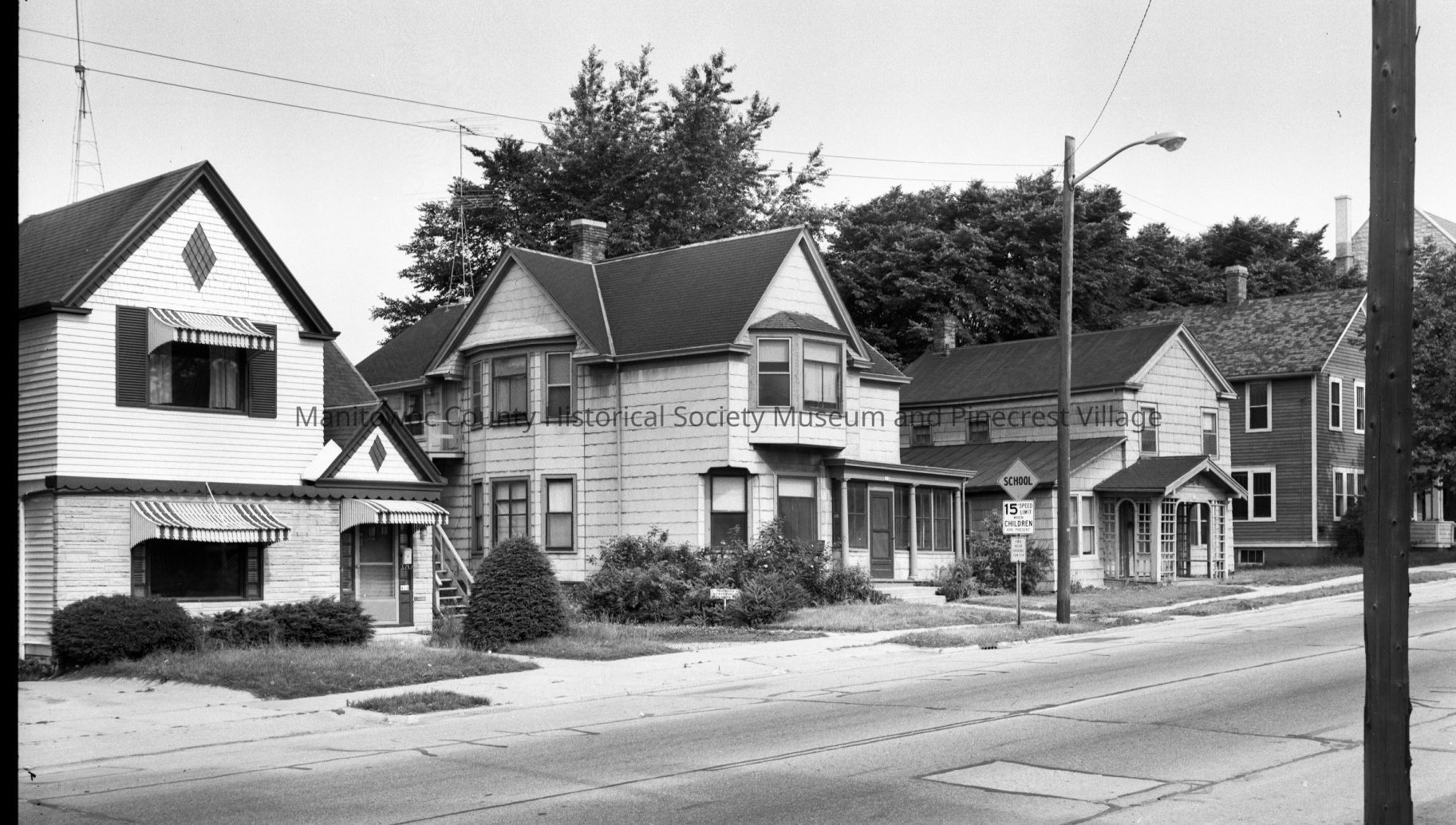 Group of homes, 414,418,420,422 North 8th Street Manitowoc to be torn down for new First National Bank. Photograph taken on July 9th, 1973.Made/Created