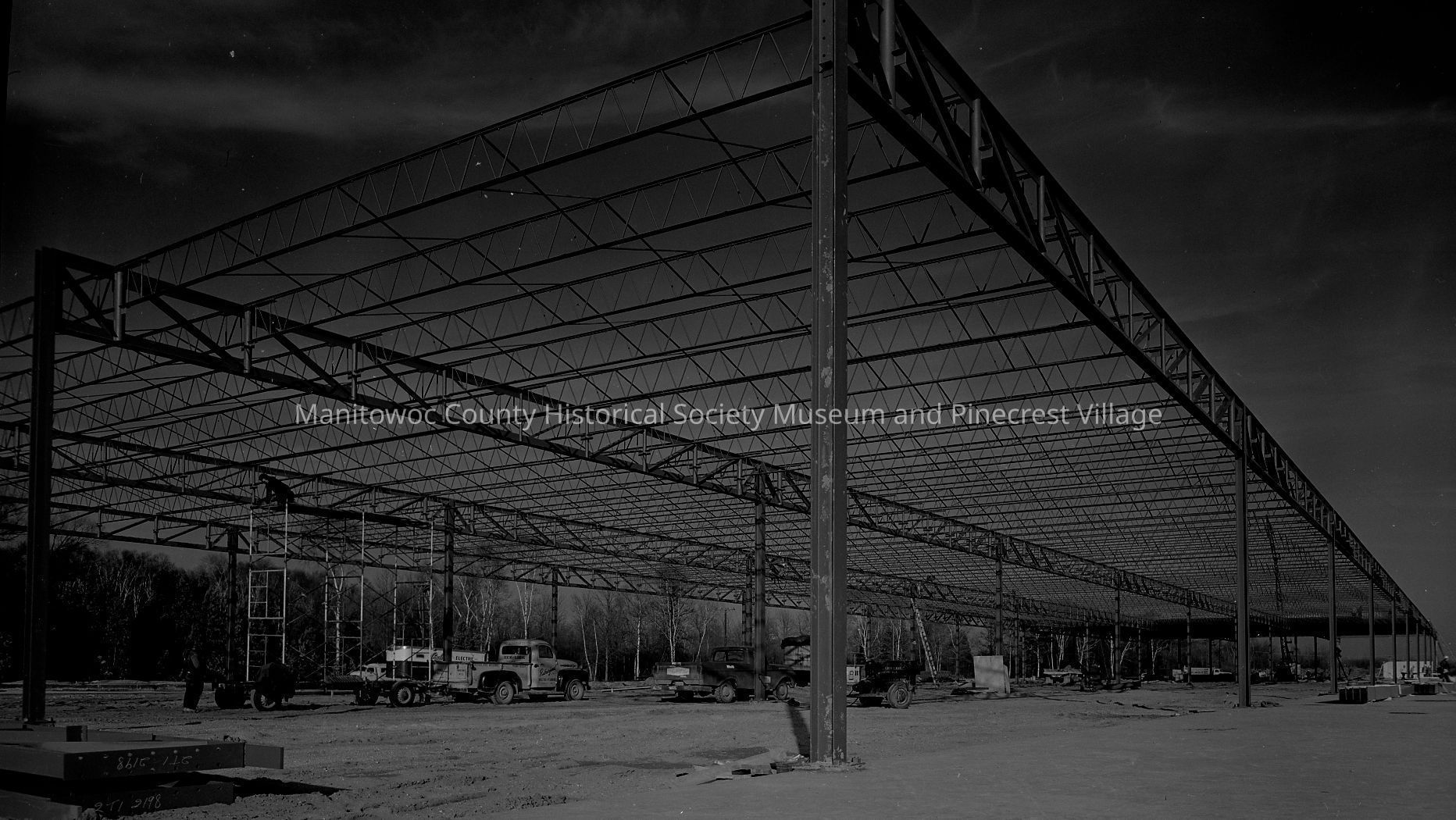 Steel framework for new Hamilton Mfg. building on Columbus Street. Photograph taken on November 26th, 1962.
