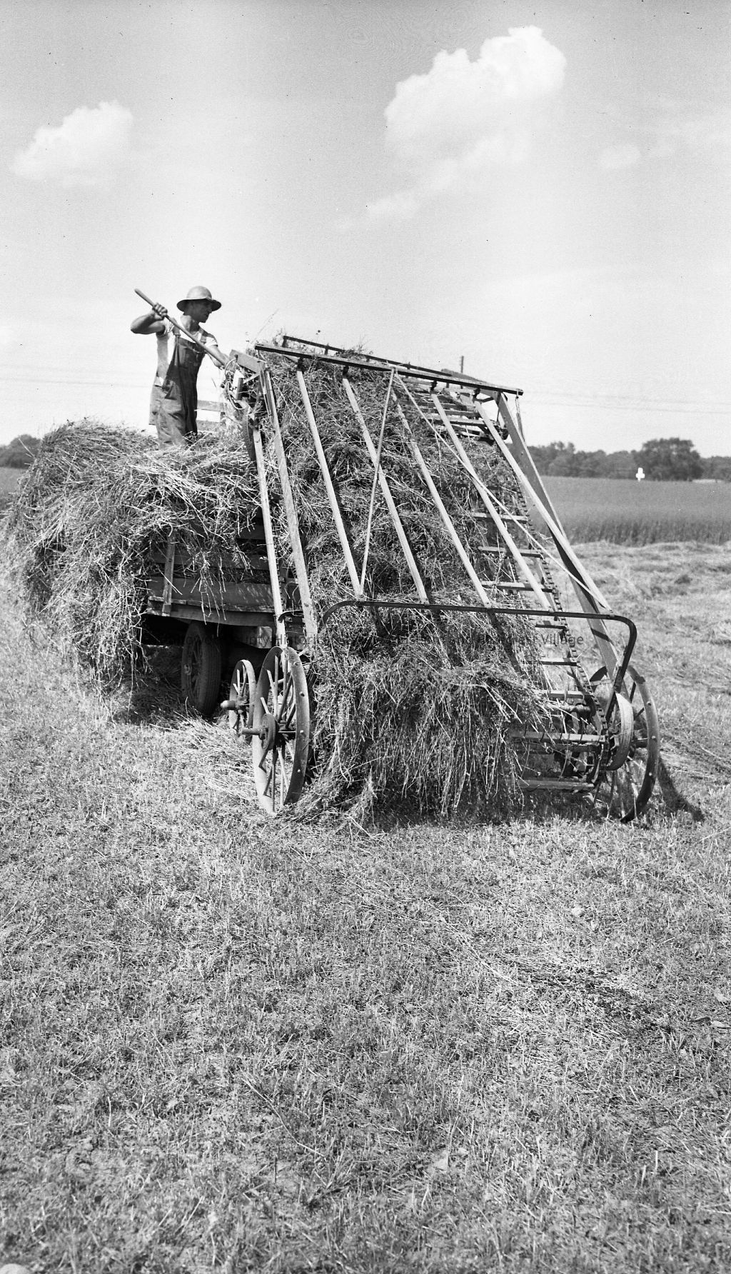 Workers bringing hay in the old fashioned way somewhere in Manitowoc County. Photograph taken on July 10th, 1952.Made/Created