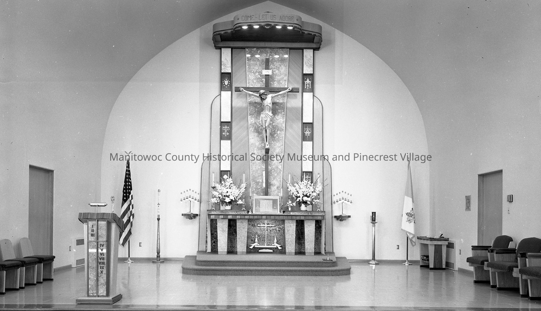 Altar at Holy Cross Catholic church. Photograph taken on May 6th, 1962.