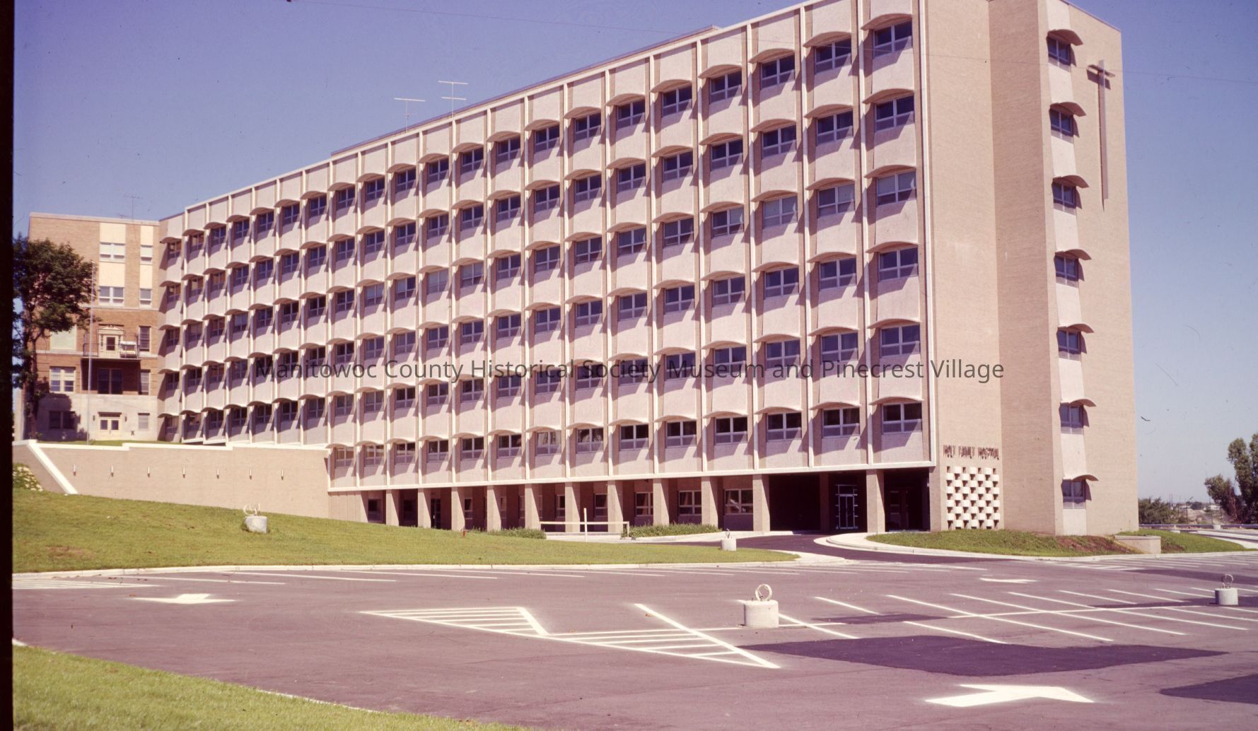 South side of new east wing of Holy Family Hospital looking from South 21st Street. Photograph taken on August 1966.Made/Created