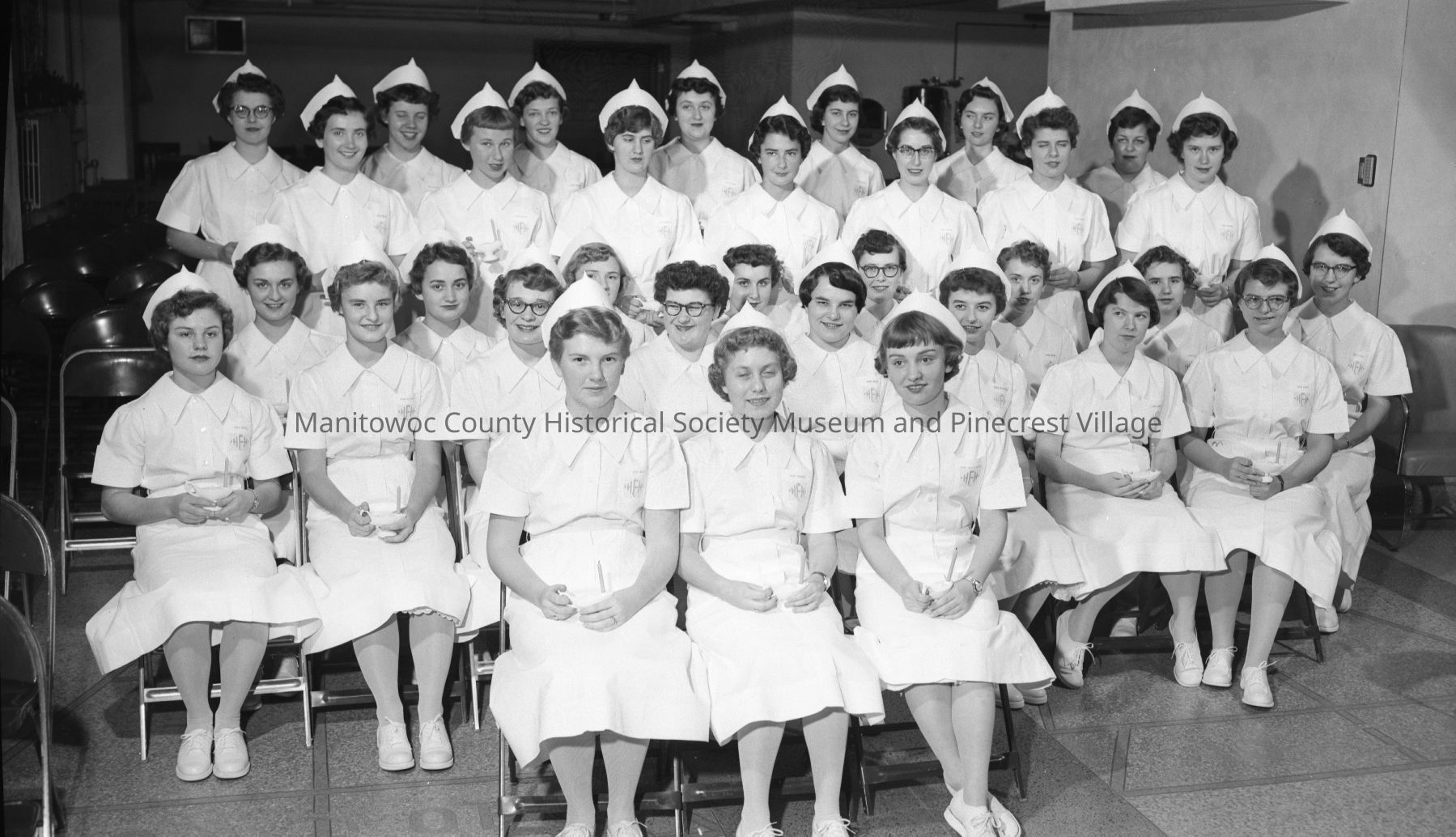 Graduating nursing class of 1955 at Holy Family Hospital, Manitowoc. Photograph taken on November 20th, 1955.Made/Created