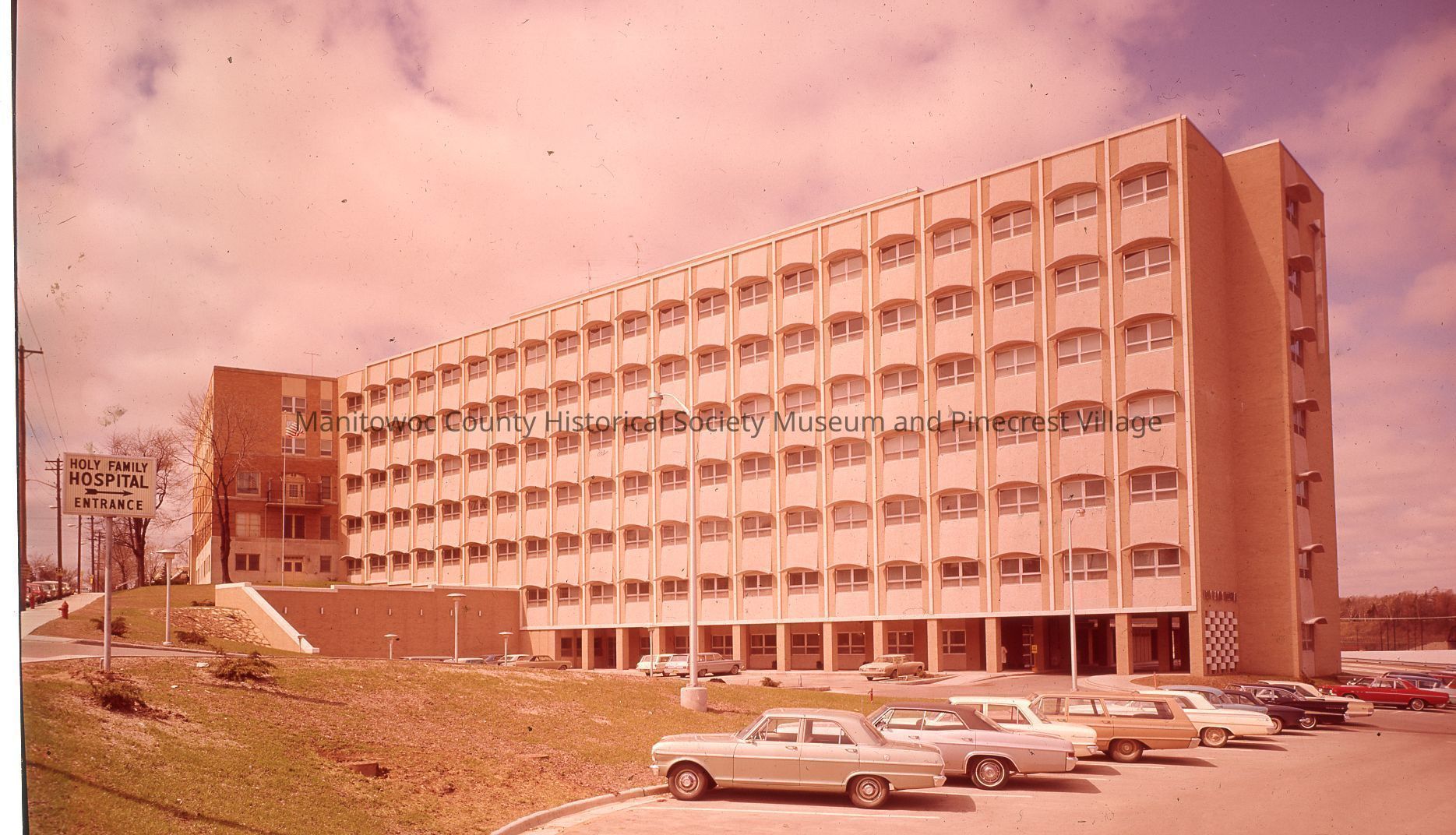 Holy Family Hospital, 2300 Western Ave. Manitowoc, new east wing looking west from South 21st Street. Photograph taken in 1967.Made/Created