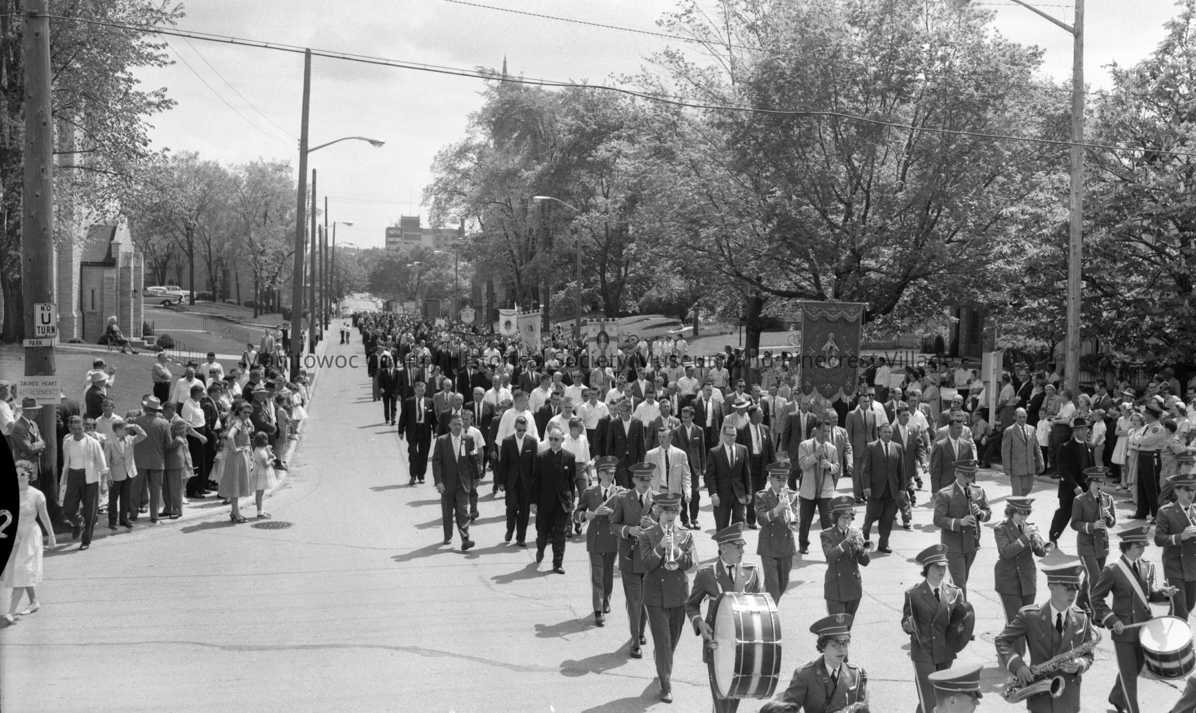 Holy Name Society parade coming up North 8th Street, Manitowoc. Photograph taken on May 21st, 1962.