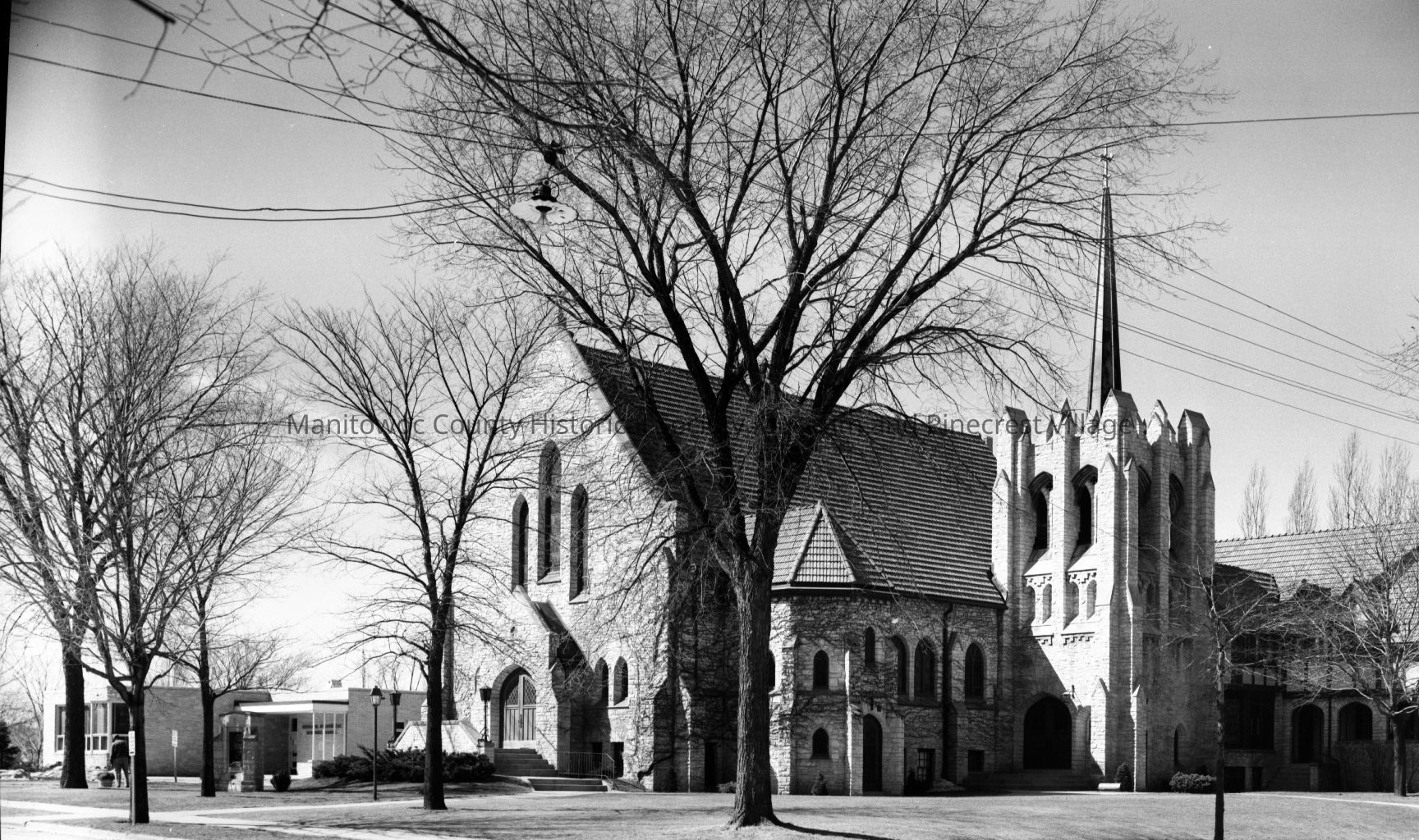 Immanual Lutheran church, 902 Pine Street Manitowoc; at left is the Christian Day School. Photograph taken on April 3rd, 1959.Made/Created