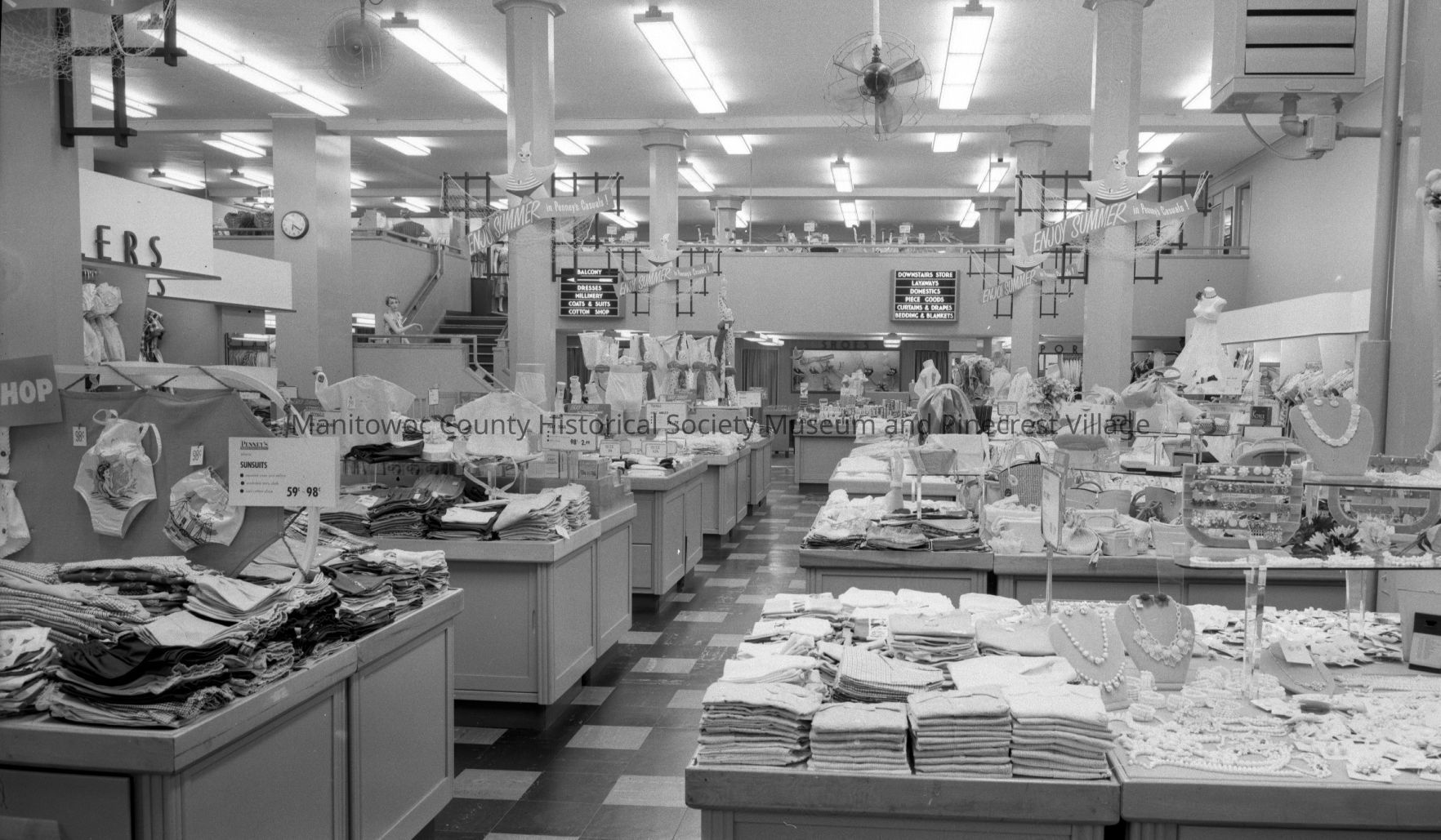 J.C. Penny store, 902 South 8th Street Manitowoc. Looking at the women's clothes and accesories department. Photograph taken on May 26th, 1954.Made/Created
