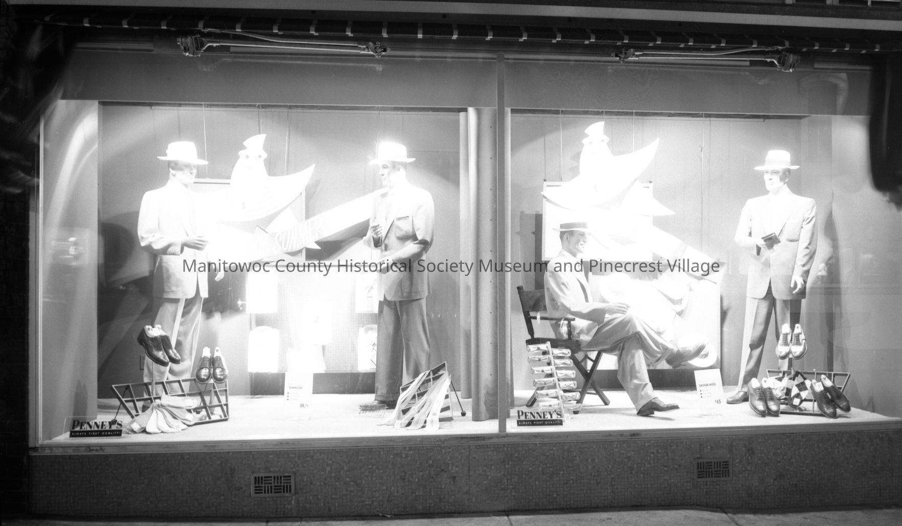 J.C. Penny store, 902 South 8th Street Manitowoc. Men's window display. Photograph taken on May 26th, 1954.