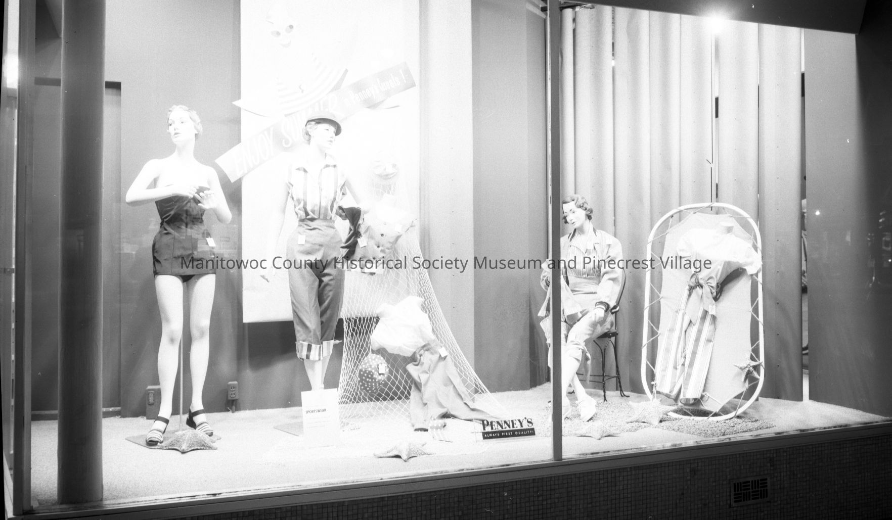 J.C. Penny store, 902 South 8th Street Manitowoc. Women's window display. Photograph taken on May 26th, 1954.