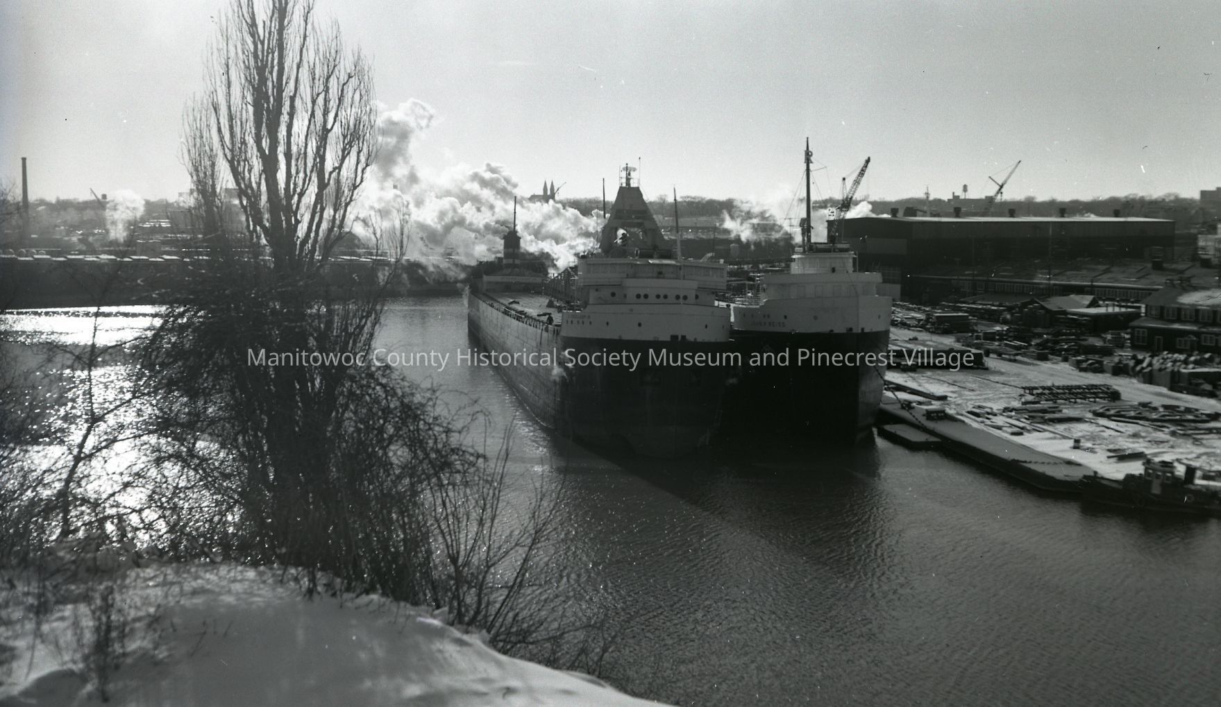 J.F. Schoelkopf Jr. & John Reiss in winter lay-up at Manitowoc Shipbuilding. Photograph taken on December 22nd, 1966.Made/Created