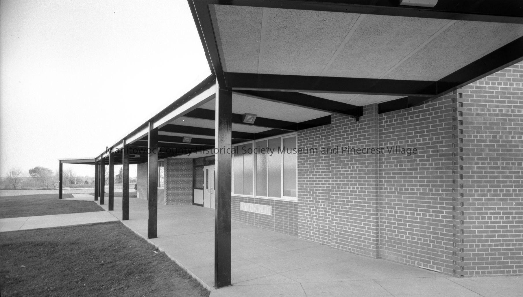 School - James Monroe, 2502 South 14th Street Manitowoc; covered walkway at entrance. Photograph taken in November 1964.Made/Created