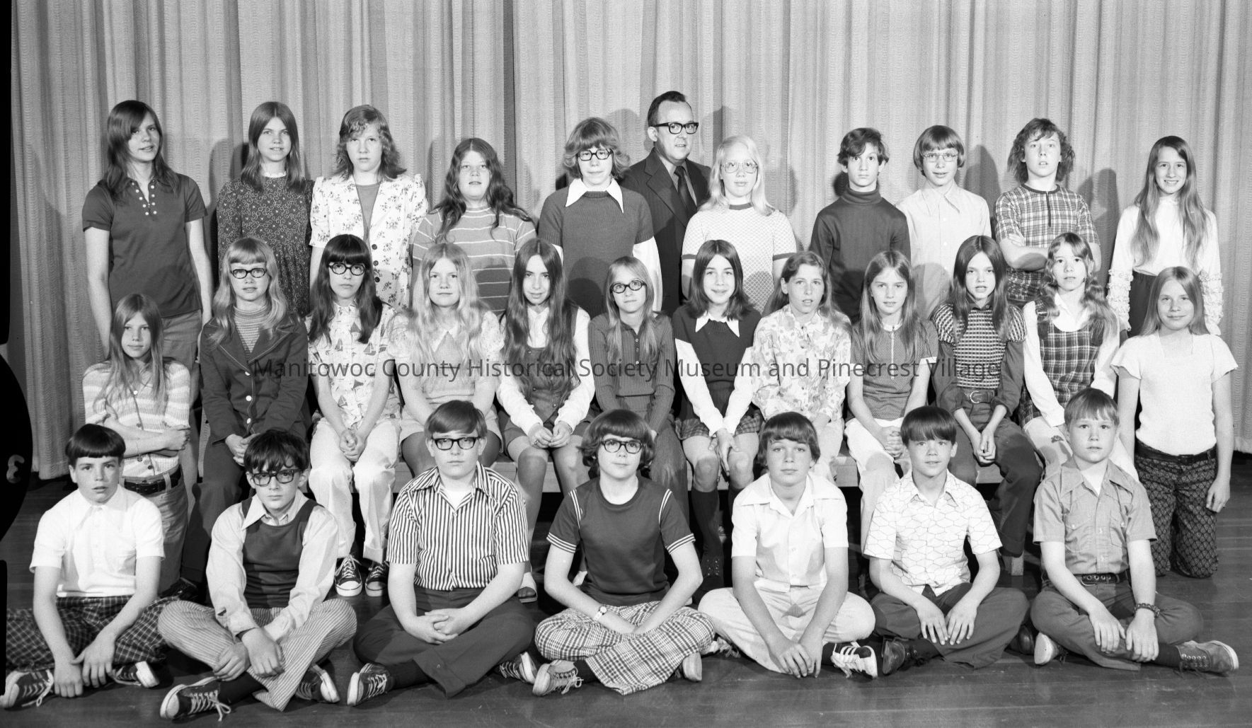 School - Jefferson, 1402 Manila Street Manitowoc; 6th grade class. Photograph taken in May 1974.