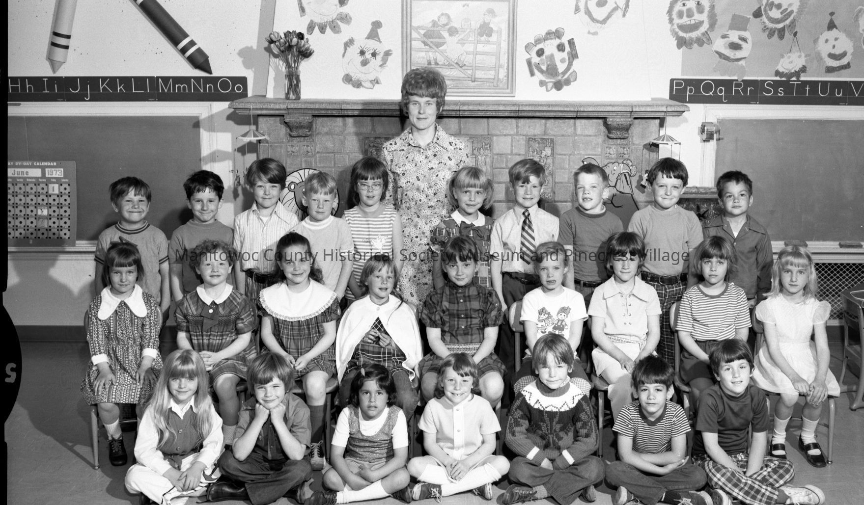 School - Jefferson, 1402 Manila Street Manitowoc; kindergarten class. Photograph taken on June 1st, 1973.