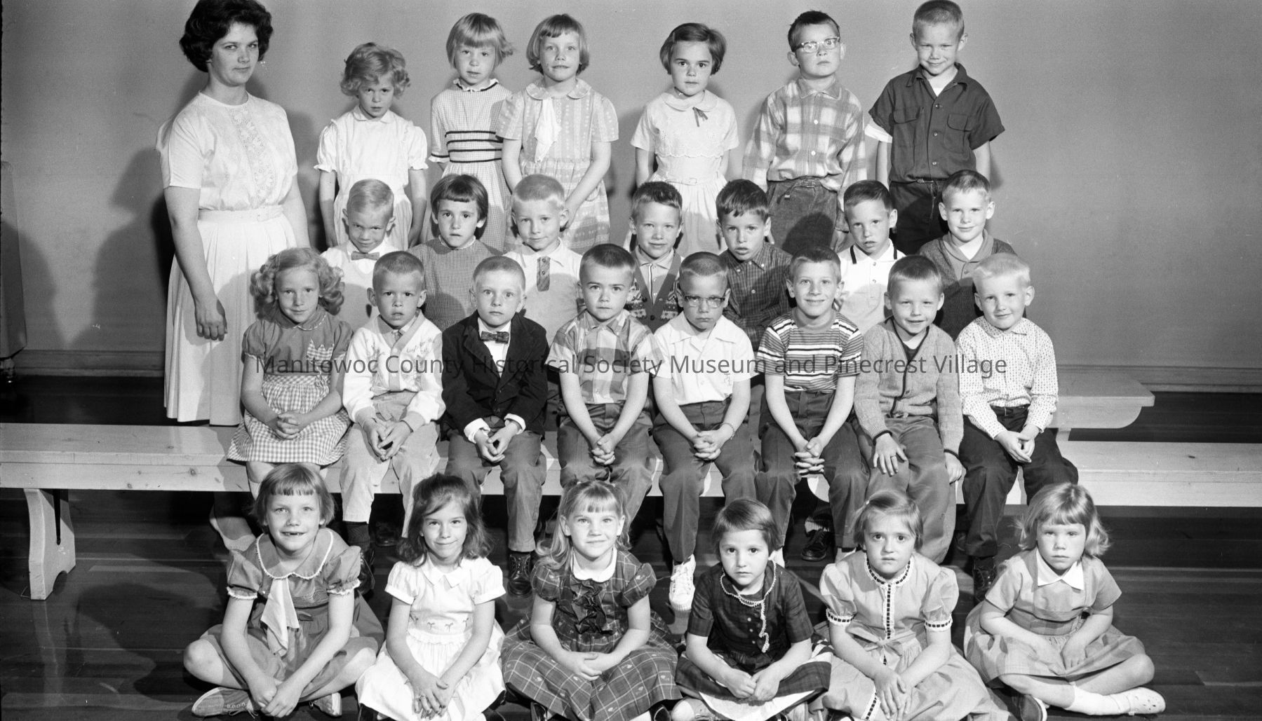 School - Jefferson, 1402 Manila Street Manitowoc; kindergarten class. Photograph taken in May 1963.