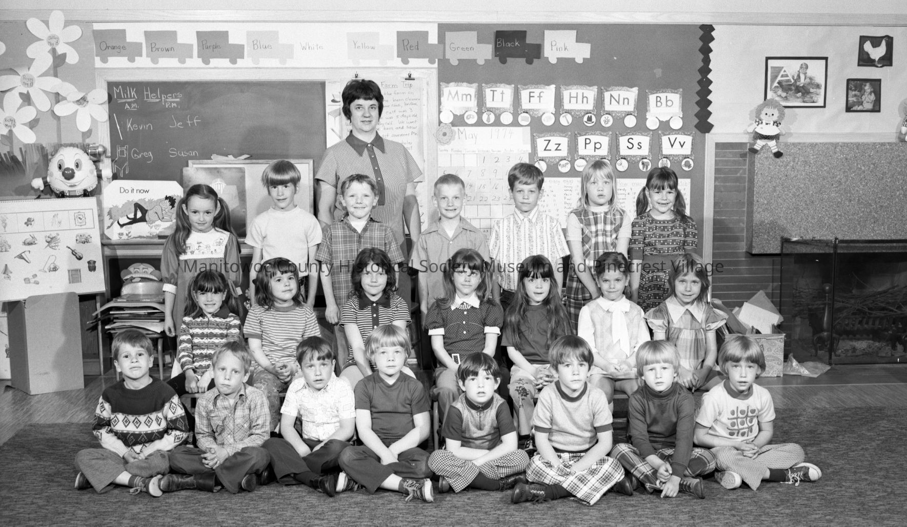School - Jefferson, 1402 Manila Street Manitowoc; kindergarten class. Photograph taken in May 1974.