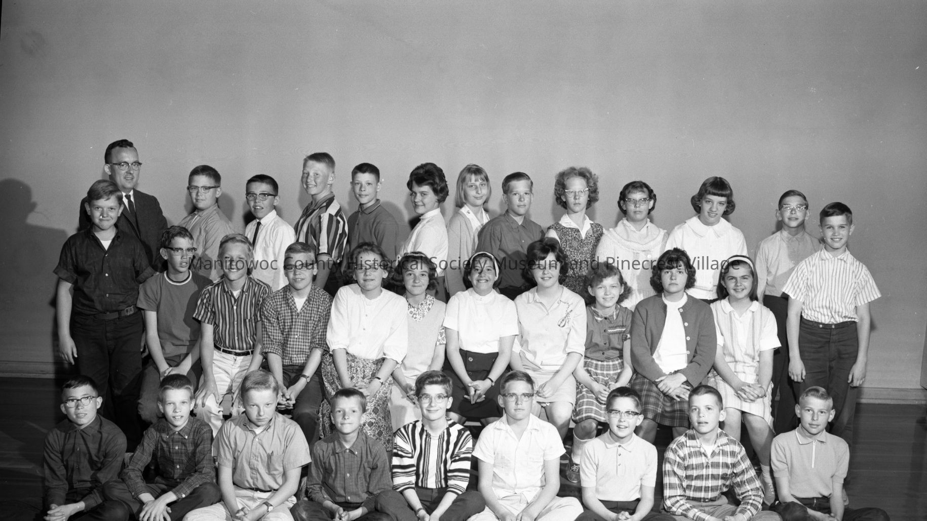 School - Jefferson, 1402 Manila Street Manitowoc; 6th grade class. Photograph taken on May 6th, 1964.