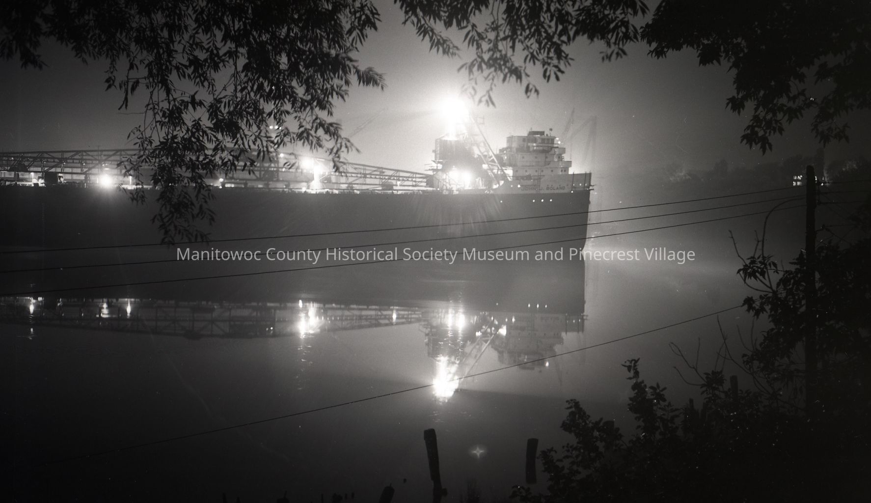 John J. Boland about to leave after being built at Manitowoc Shipbuilding. Looking at the bow from across the river probably down below North 10th Street. Photograph taken in 1953.Made/Created