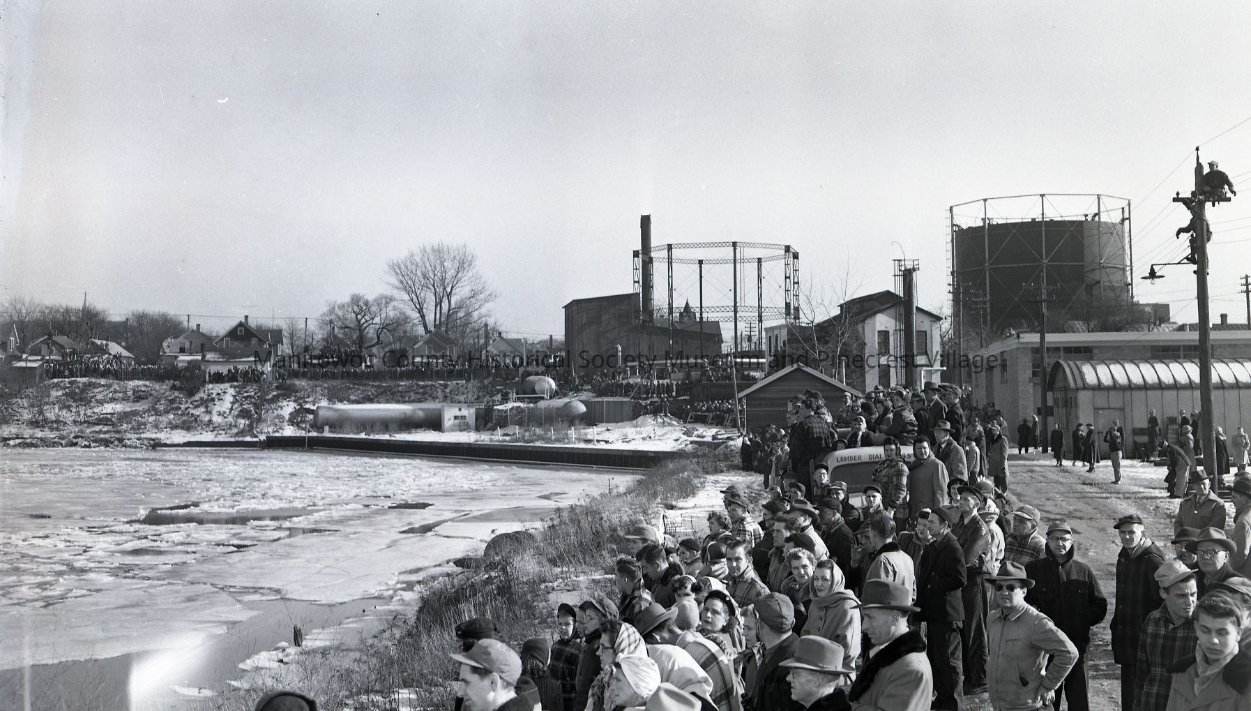 John Munson launching at Manitowoc Shipbuilding. Crowd behind gas company at west end of Chicago Street. Photograph taken on December 1st, 1951.Made/Created