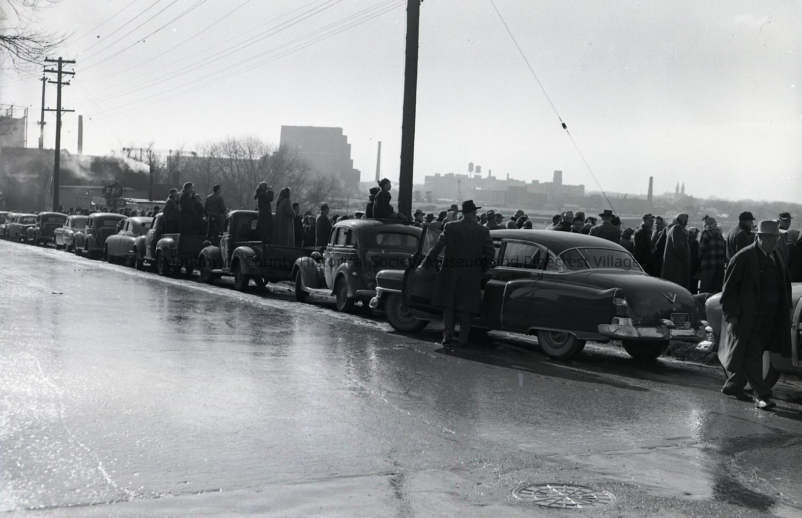 Crowd watching launch of John Munson at Manitowoc Shipbuilding along 500 block of North 10th Street. Photograph taken December 1st, 1951.Made/Created