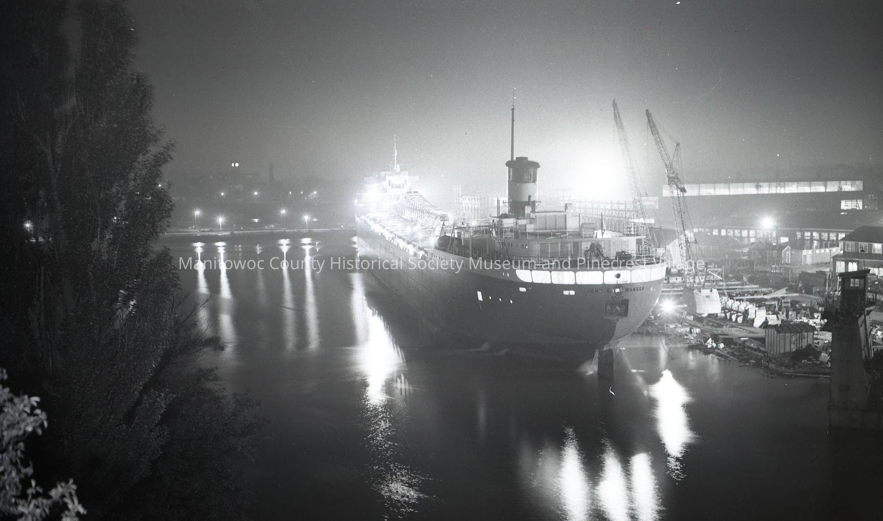 Night photo of John Munson at Manitowoc Shipbuilding. Photograph taken on August 7th, 1952.