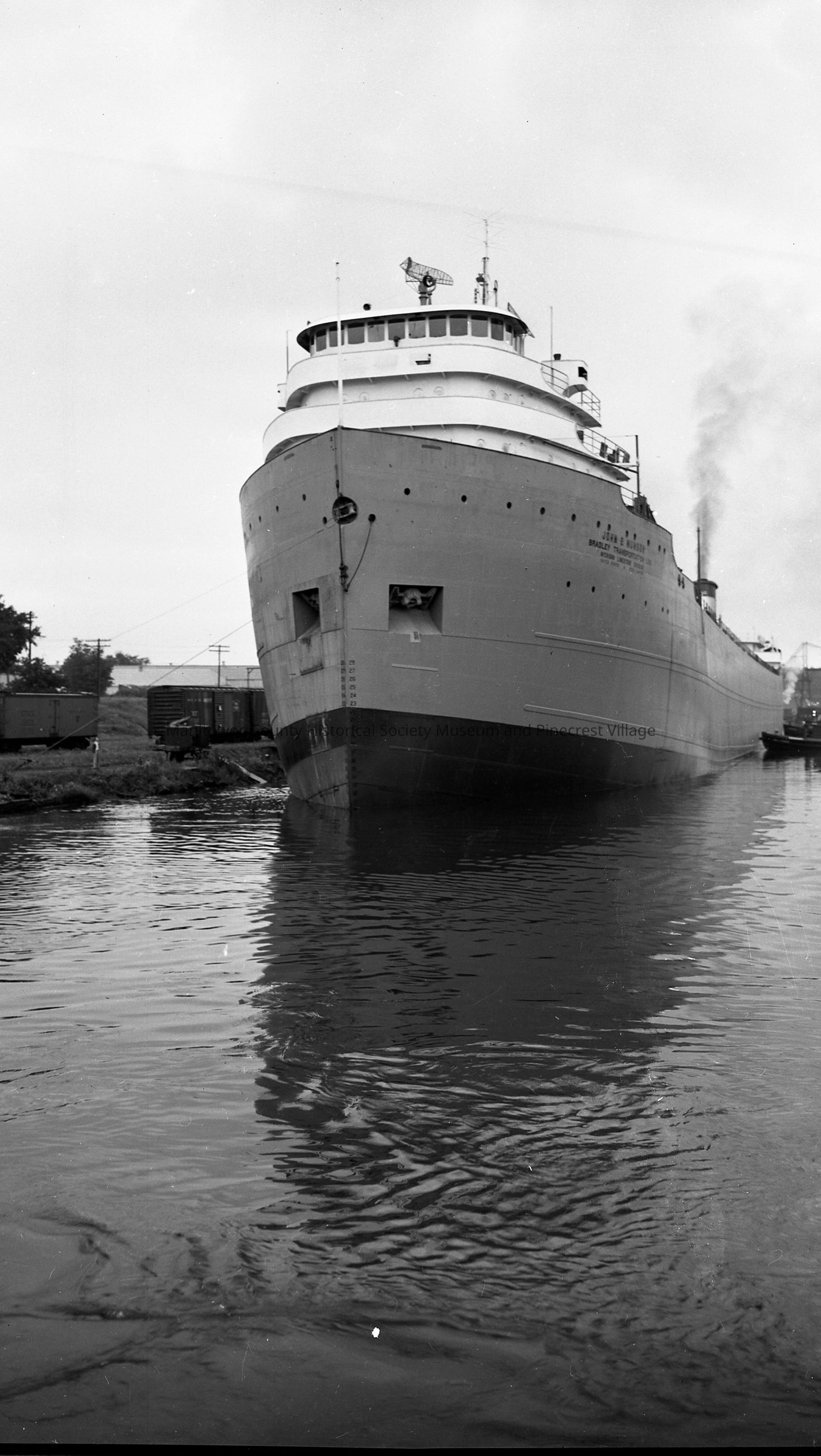"John Munson" pushed by tugs to dock near South 16th street entrance to Manitowoc Shipbuilding where she was built
