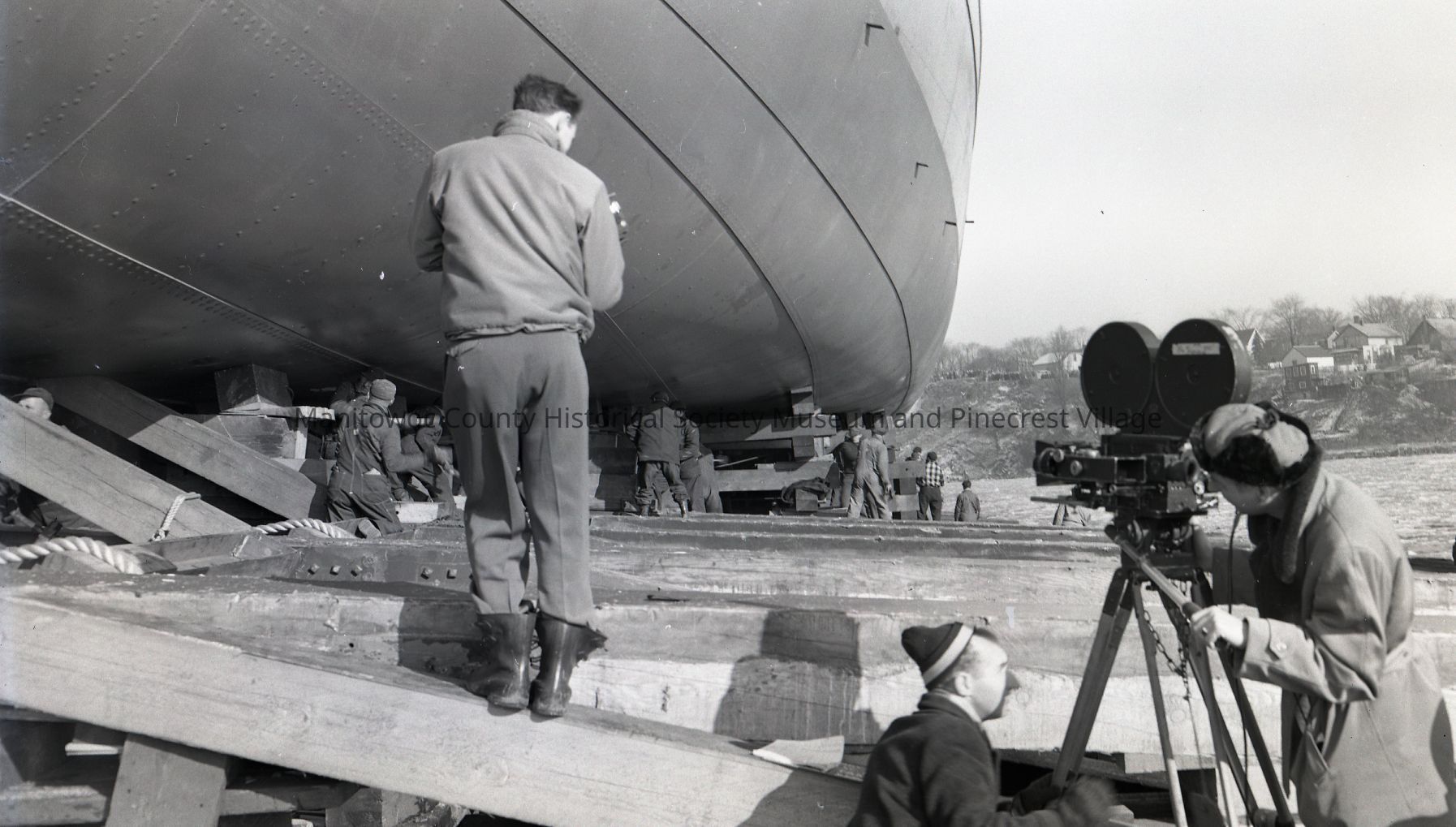 John Munson launching preparation and film crew. Photograph taken on December 1st, 1951.
