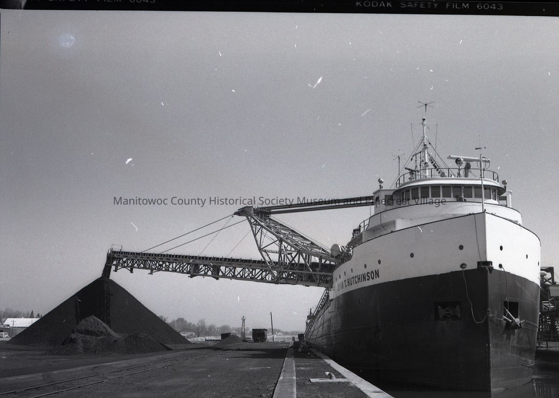 John T. Hutchinson unloading coal at C. Reiss dock in Manitowoc. Photograph taken in April 1978.