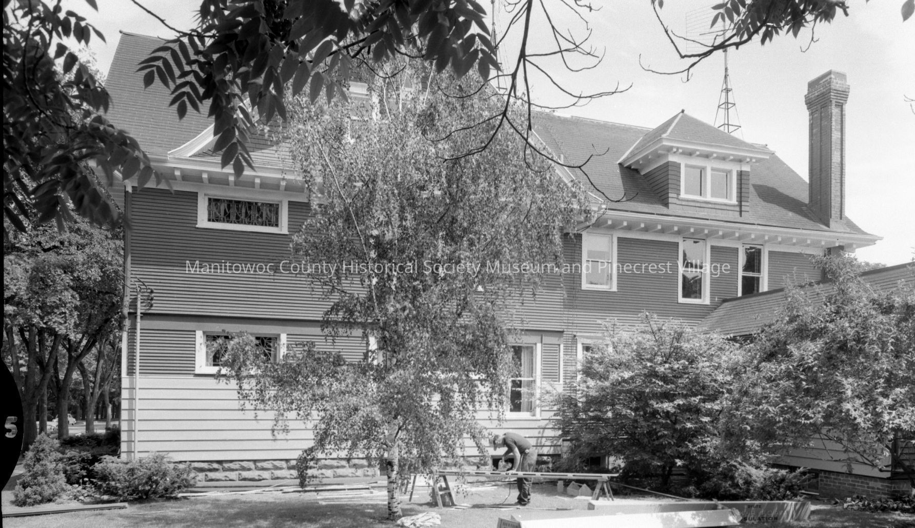 Rear of home at 709 St. Clair Street Manitowoc, old Julius Nelson home. Photograph taken on July 21st, 1958.Made/Created