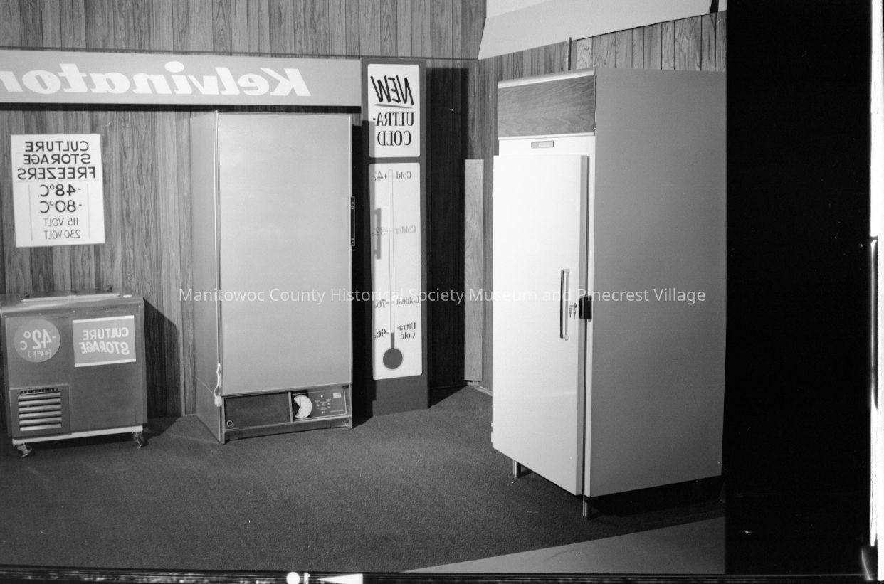 Kelvinator Company, 621 Quay Street Manitowoc, display of specialty refrigerator freezers. Photograph taken on July 15th, 1976.Made/Created