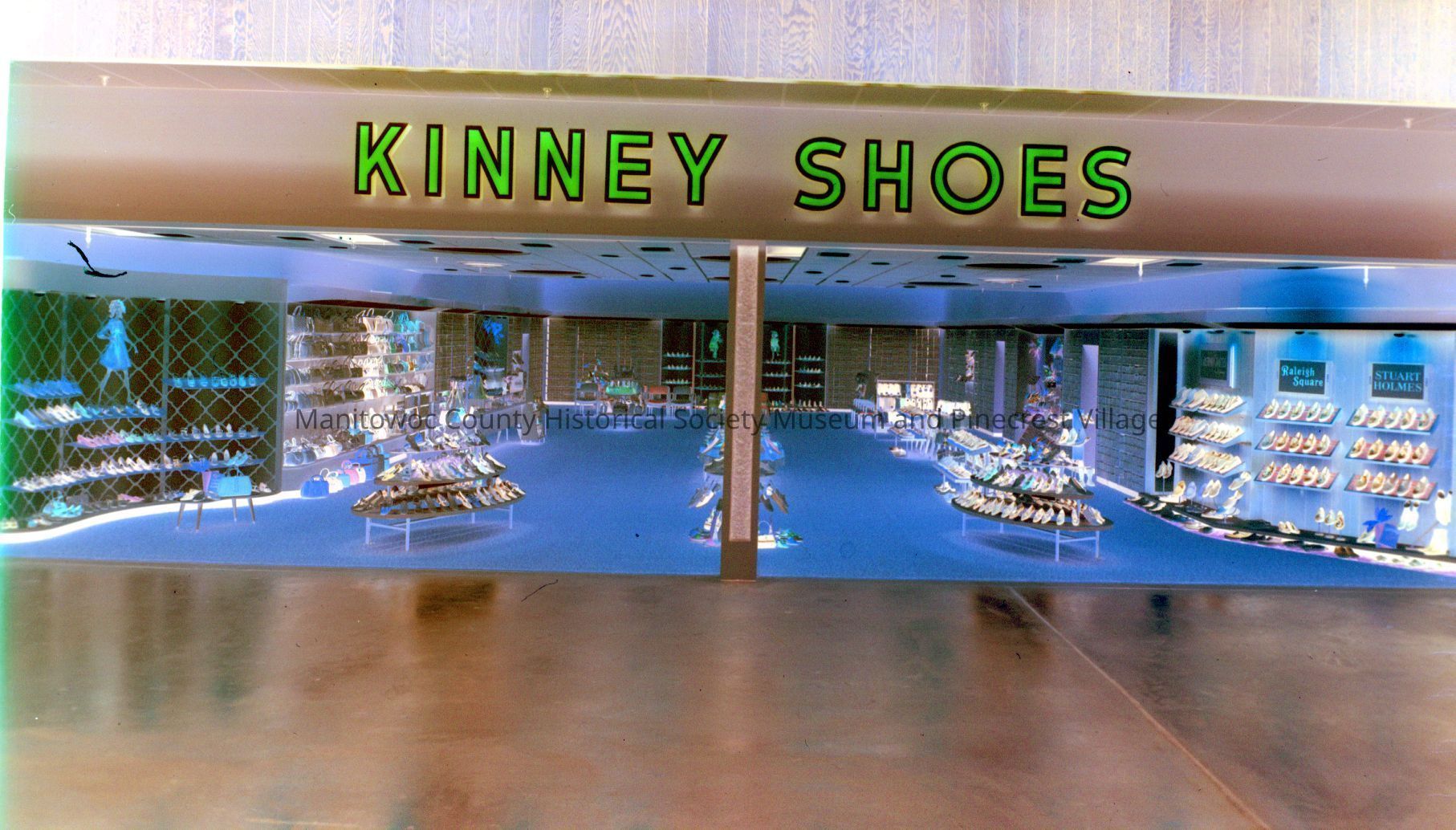 New Kinney Shoe store at Mid-Cities mall along Memorial Drive, Manitowoc. Looking at indoor main entrance. Photograph taken in 1968.Made/Created