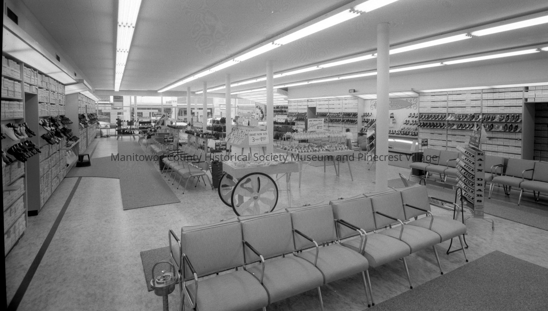 Kinney Shoe store, 905 South 8th Street Manitowoc; interior looking toward front at Grand Opening. Photograph taken in August 1959.Made/Created