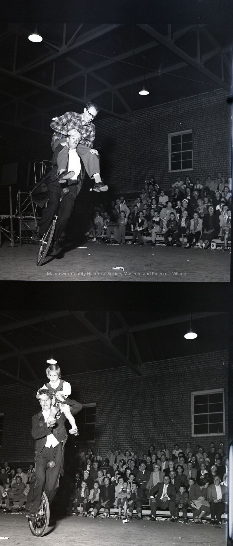Performers at the Kiwanis Circus at Manitowoc Armory. Photograph taken in 1953.