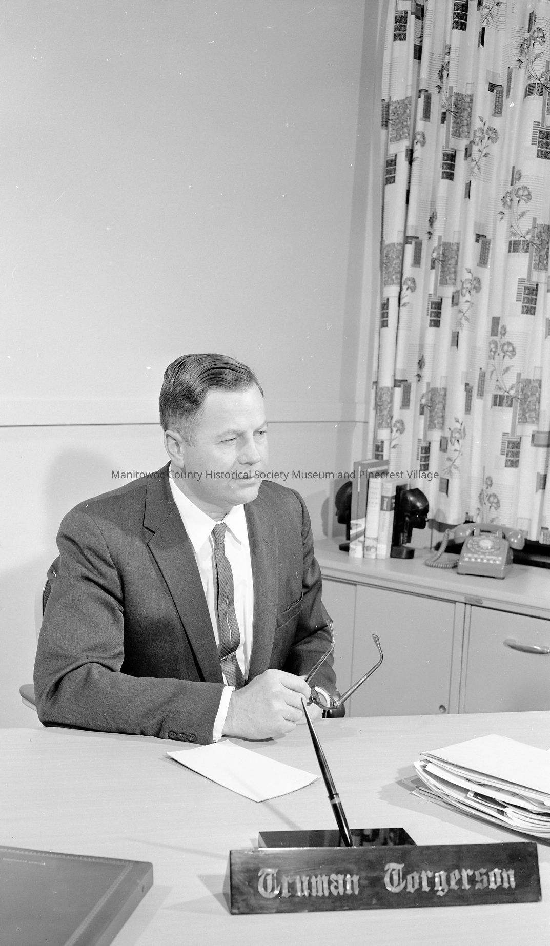 Photograph of Truman Torgerson, general manager of Lake-To-Lake Co-op Manitowoc, taken on January 13th, 1961.Made/Created