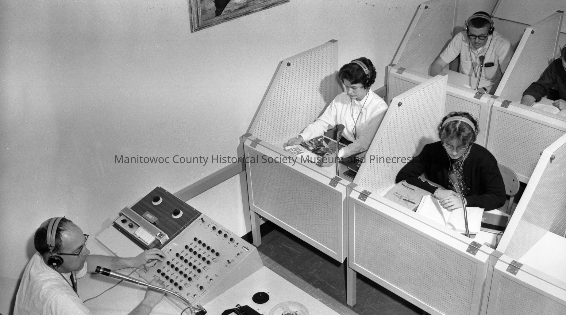 Lincoln High School, South 8th Street Manitowoc, language lab class room. Photograph taken on November 13th, 1963.Made/Created