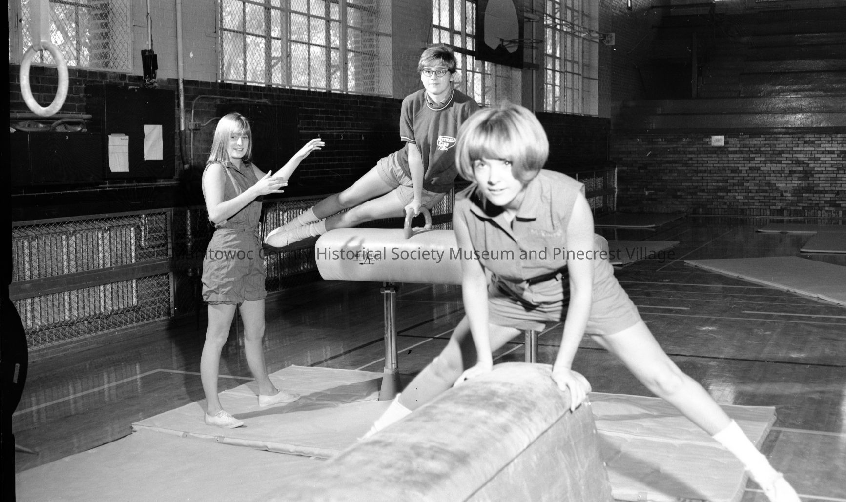 Lincoln High School, South 8th street Manitowoc, gymnastics workout in old gym. Photograph taken on October 25th, 1966.Made/Created