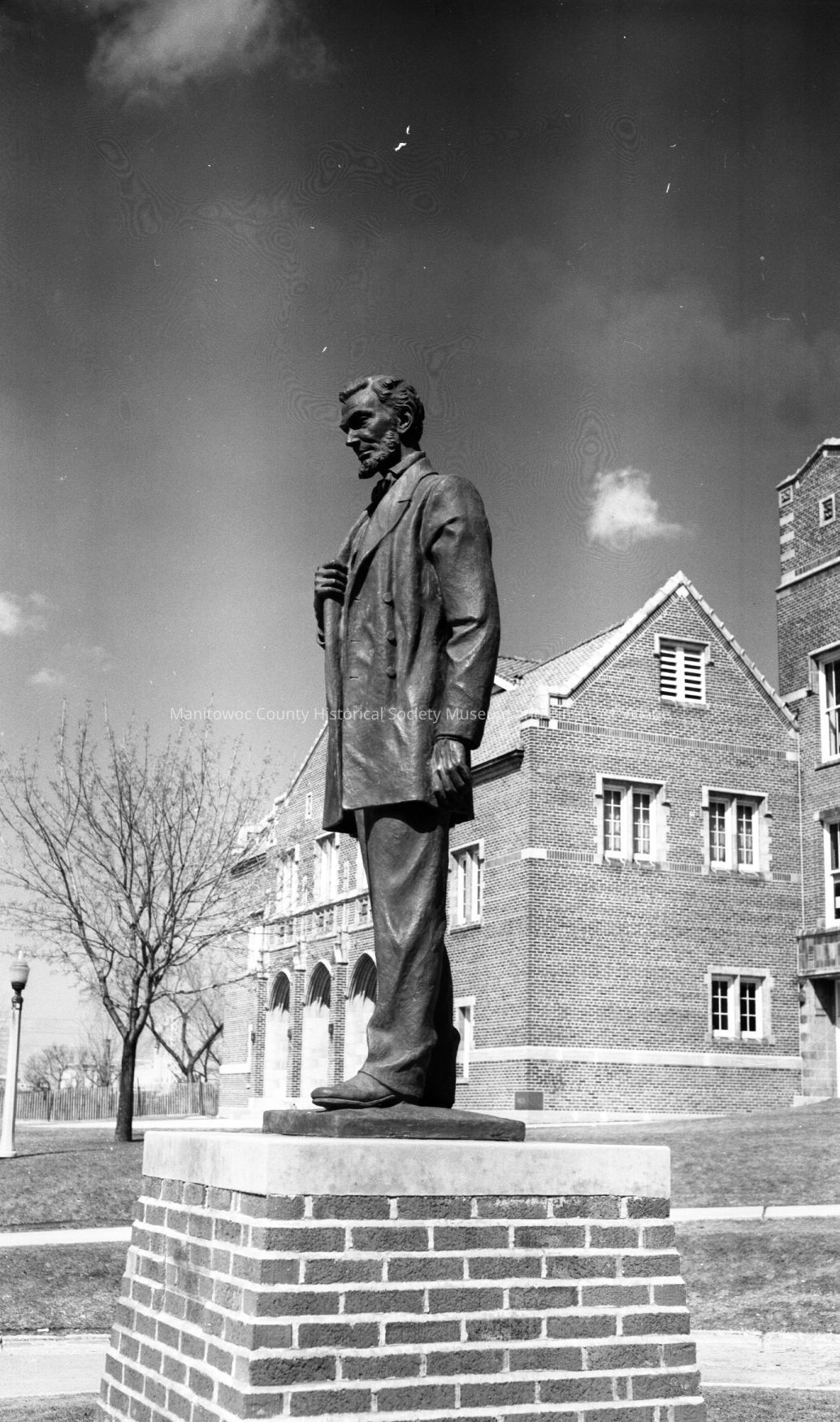 Lincoln High School, South 8th Street Manitowoc. Statue of Lincoln looking towards the auditorium. Gift of 1961 class. Photograph taken on April 15th, 1965.Made/Created