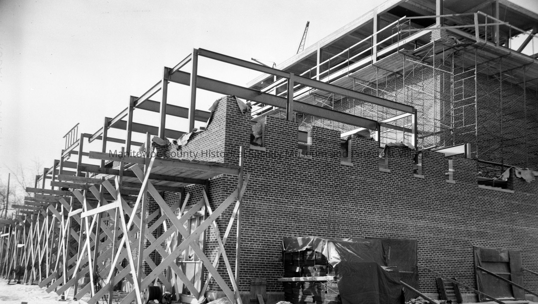 Lincoln High School, South 8th Street Manitowoc, brickwork on auditorium addition. Photograph taken on December 19th, 1955.Made/Created