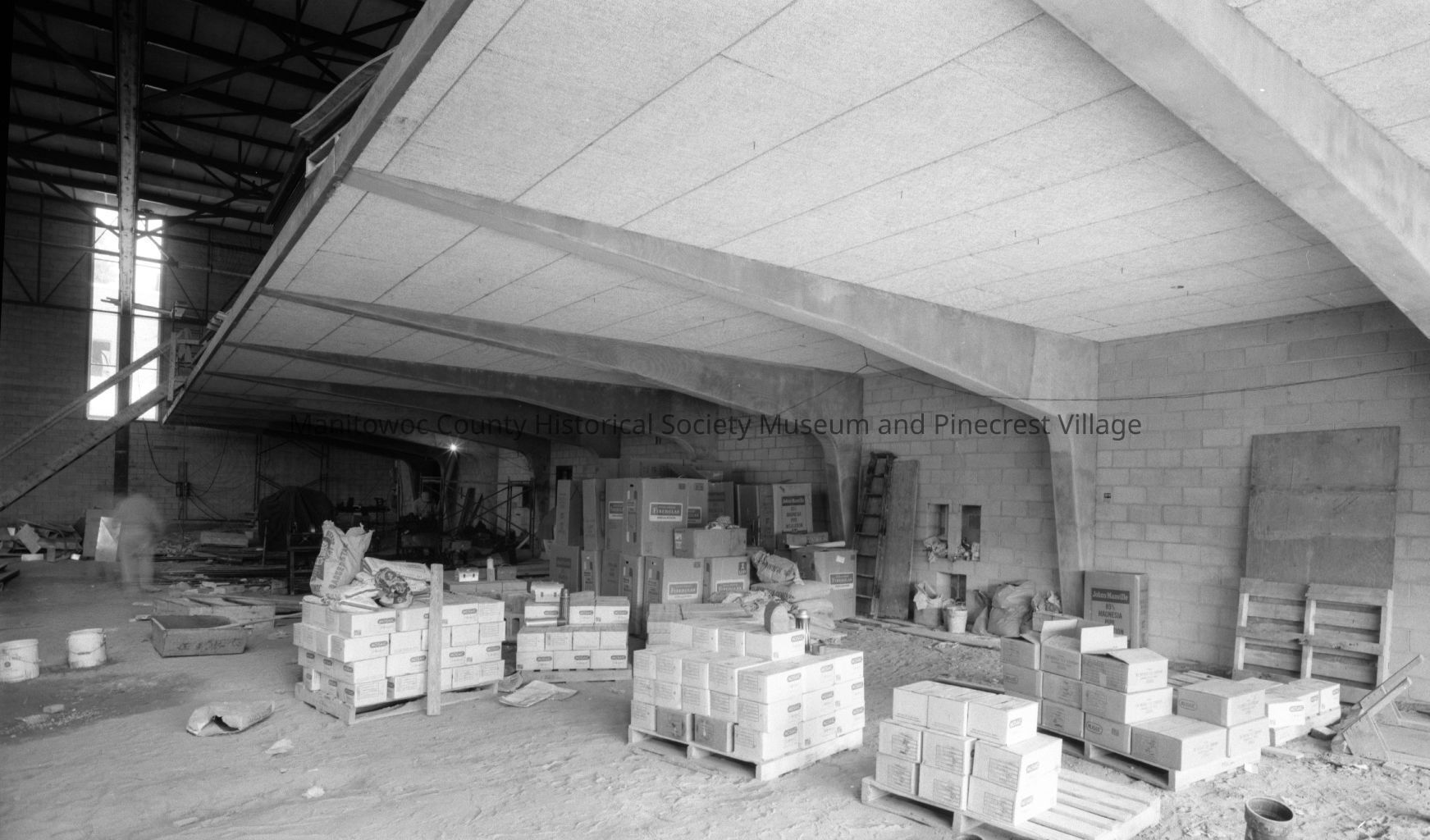 Lincoln High School, South 8th Street Manitowoc, looking at area under balcony at east end of new gym. Photograph taken in July 1961.Made/Created