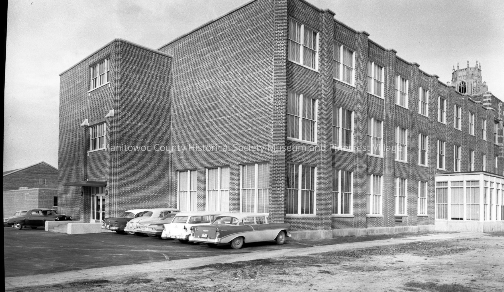 Lincoln High School, South 8th Street Manitowoc, south wing with completed second & third floors. Photograph taken on November 28th, 1961.Made/Created