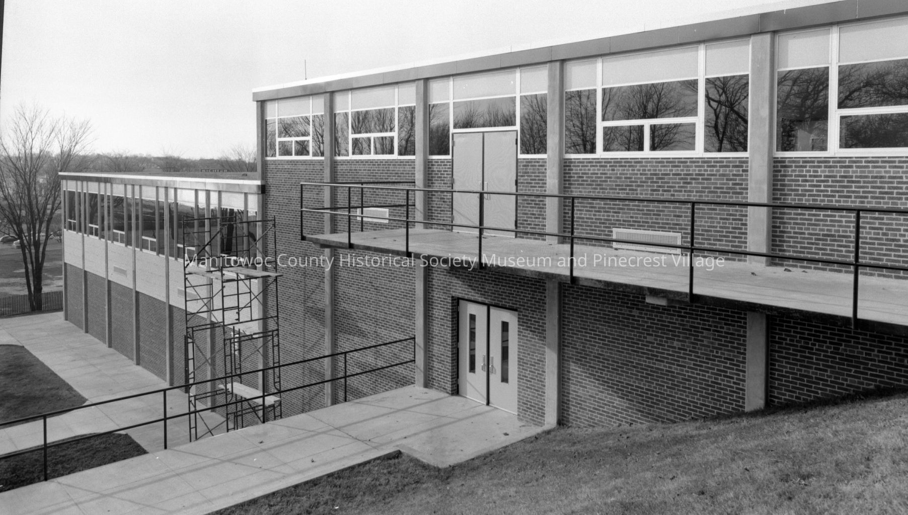 Lincoln High School, South 8th Street Manitowoc, backside of new gym looking from upper parking lot south. Photograph taken on November 28th, 1961.Made/Created