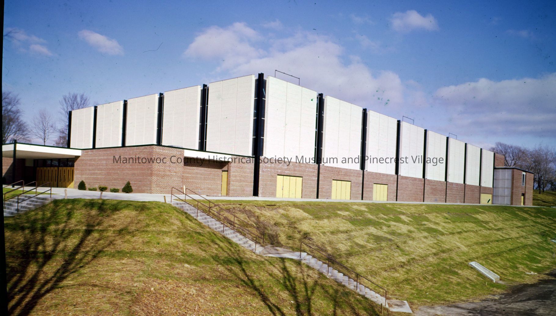 Lincoln High School, South 8th Street Manitowoc, looking northeast at south side of new gym. Photograph taken in 1962.Made/Created