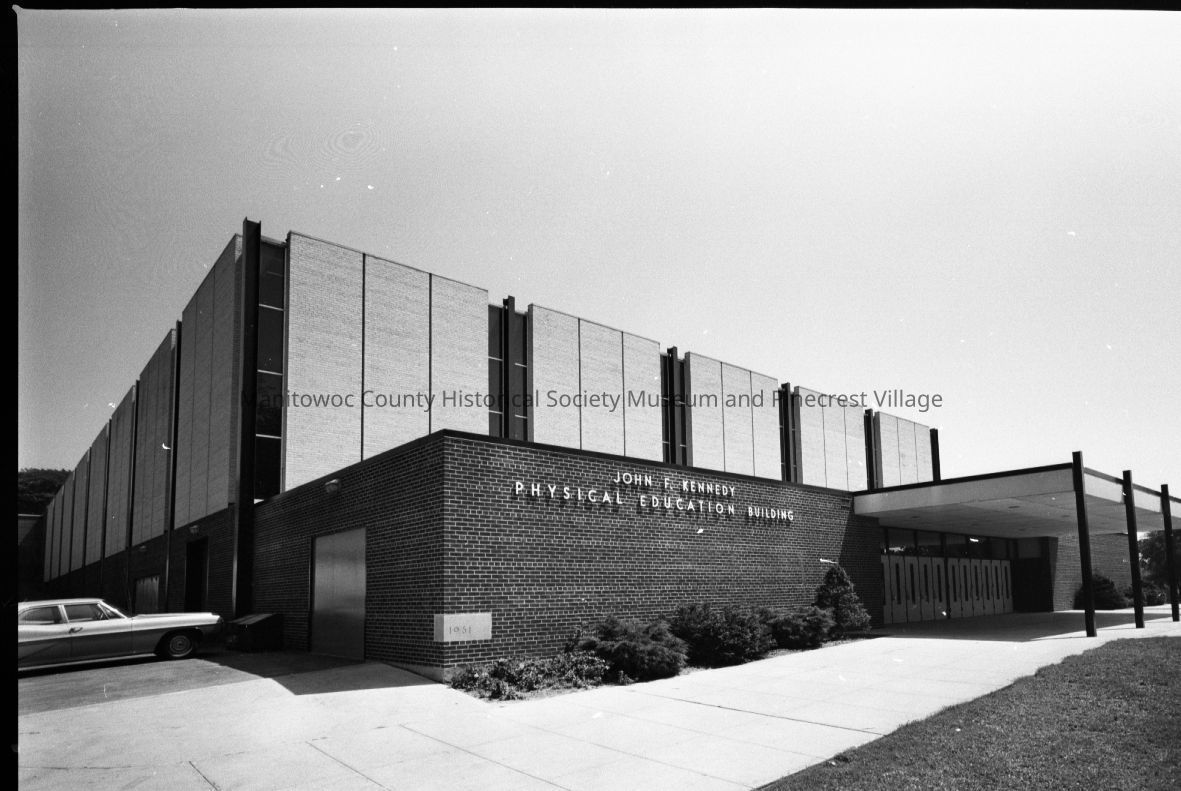 Lincoln High School, South 8th Street Manitowoc, J.F.K. center looking at northwest corner. Photograph taken on September 5th, 1972.Made/Created