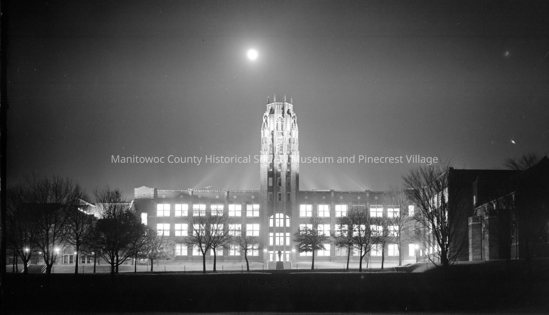 Lincoln High School, 1433 South 8th Street Manitowoc looking from west end of bowl. Night photograph.Photograph taken on November 12th, 1962.Made/Created
