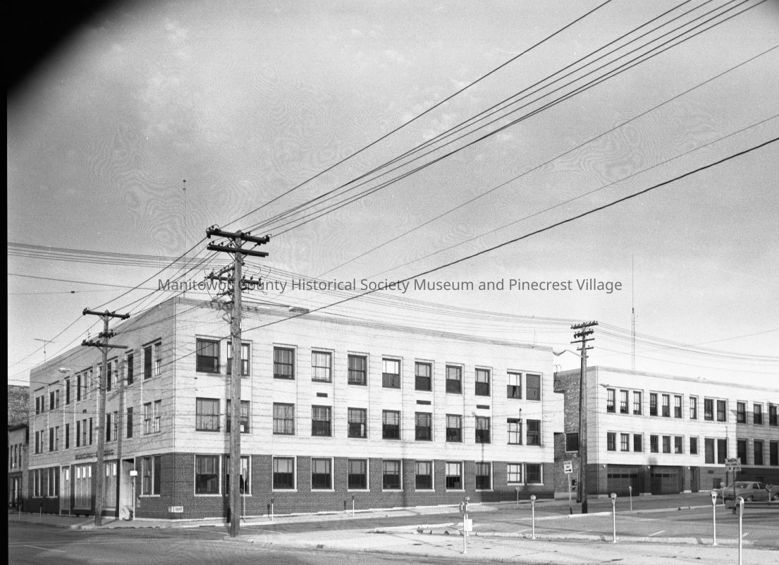 Manitowoc City Hall, 817 Franklin Street Manitowoc and Police Dept, 824 Jay Street looking at the South 9th Street side. Circa 1969.Made/Created