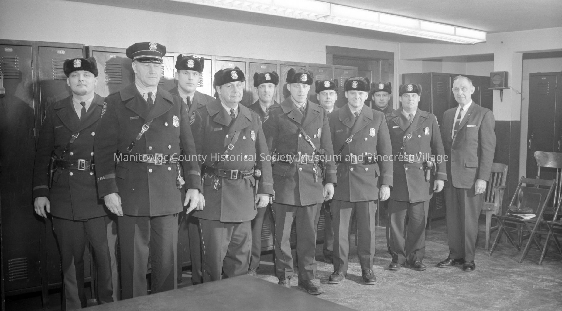 Manitowoc city police force; Chief Tomchek at right. Photograph taken on January 11th, 1962.