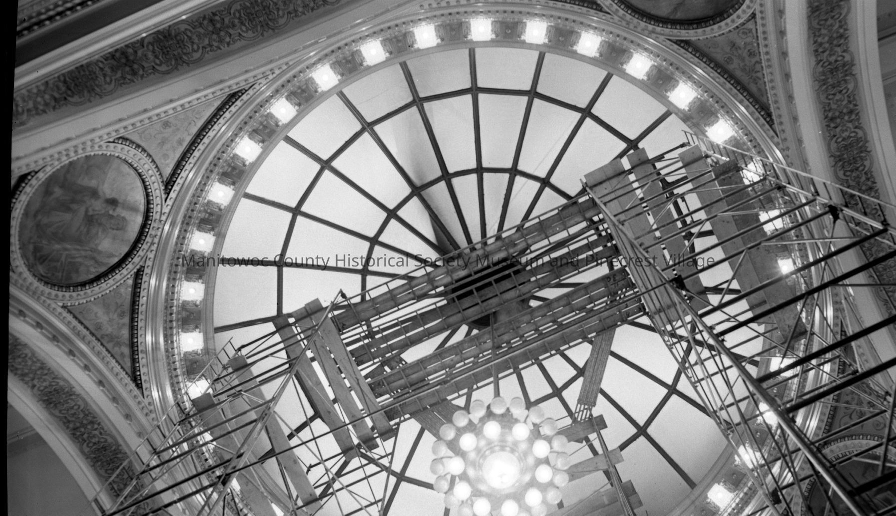 Manitowoc County Courthouse; interior dome work. Photograph taken on December 15th, 1952.